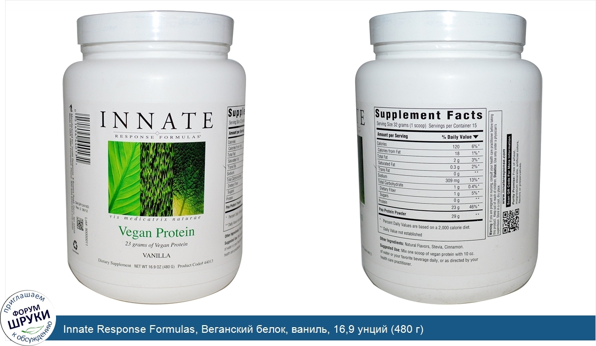 Друзья, если у вас есть отзыв/дополнение/комментарий/вопрос относительно Innate Response Formulas, Веганский белок, ваниль, 16,9 унций (480 г) - напишите его ответом в эту тему (это будет полезно всему сообществу в целом и вам в отдельности).