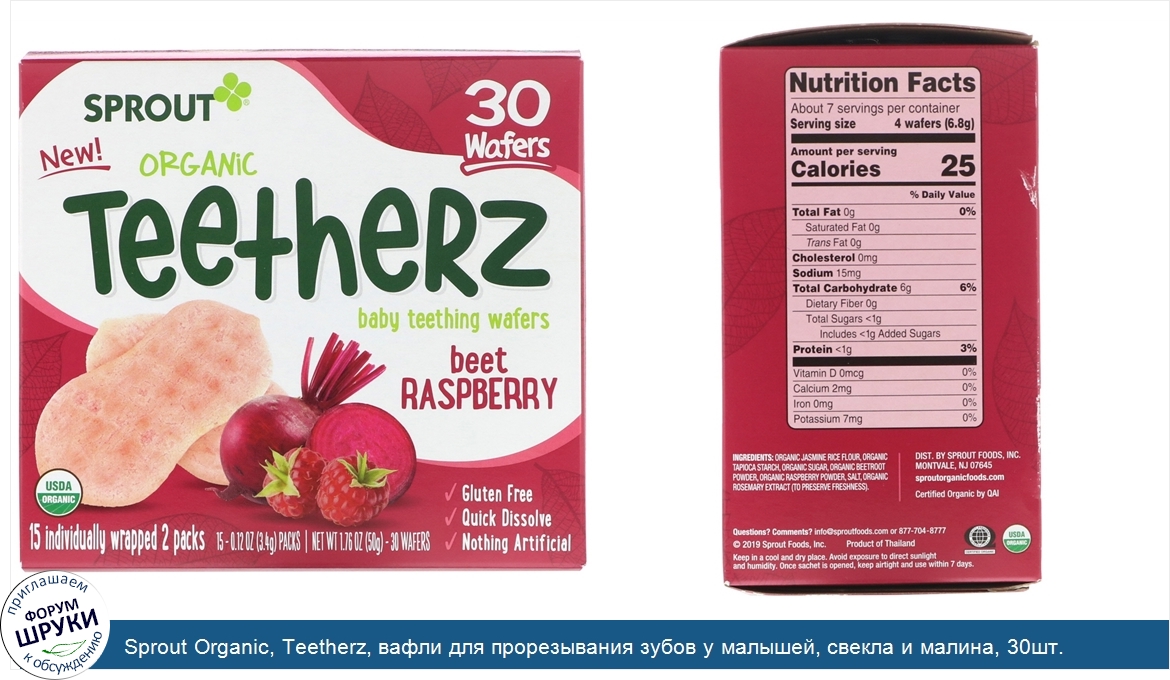 Друзья, если у вас есть отзыв/дополнение/комментарий/вопрос относительно Sprout Organic, Teetherz, вафли для прорезывания зубов у малышей, свекла и малина, 30шт. - напишите его ответом в эту тему (это будет полезно всему сообществу в целом и вам в отдельности).