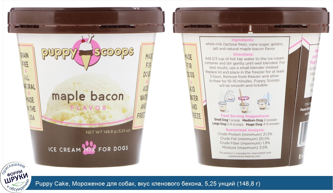 Друзья, если у вас есть отзыв/дополнение/комментарий/вопрос относительно Puppy Cake, Мороженое для собак, вкус кленового бекона, 5,25 унций (148,8 г) - напишите его ответом в эту тему (это будет полезно всему сообществу в целом и вам в отдельности).
