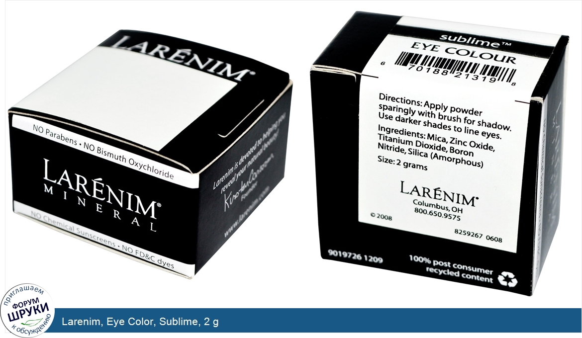 Друзья, если у вас есть отзыв/дополнение/комментарий/вопрос относительно Larenim, Eye Color, Sublime, 2 g - напишите его ответом в эту тему (это будет полезно всему сообществу в целом и вам в отдельности).