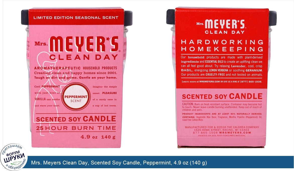 Друзья, если у вас есть отзыв/дополнение/комментарий/вопрос относительно Mrs. Meyers Clean Day, Scented Soy Candle, Peppermint, 4.9 oz (140 g) - напишите его ответом в эту тему (это будет полезно всему сообществу в целом и вам в отдельности).