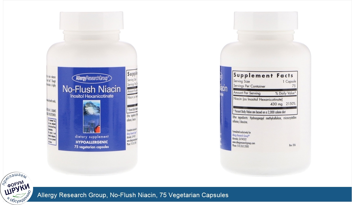 Друзья, если у вас есть отзыв/дополнение/комментарий/вопрос относительно Allergy Research Group, No-Flush Niacin, 75 Vegetarian Capsules - напишите его ответом в эту тему (это будет полезно всему сообществу в целом и вам в отдельности).