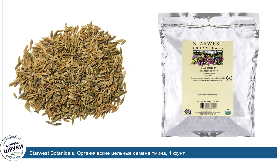 Друзья, если у вас есть отзыв/дополнение/комментарий/вопрос относительно Starwest Botanicals, Органические цельные семена тмина, 1 фунт - напишите его ответом в эту тему (это будет полезно всему сообществу в целом и вам в отдельности).