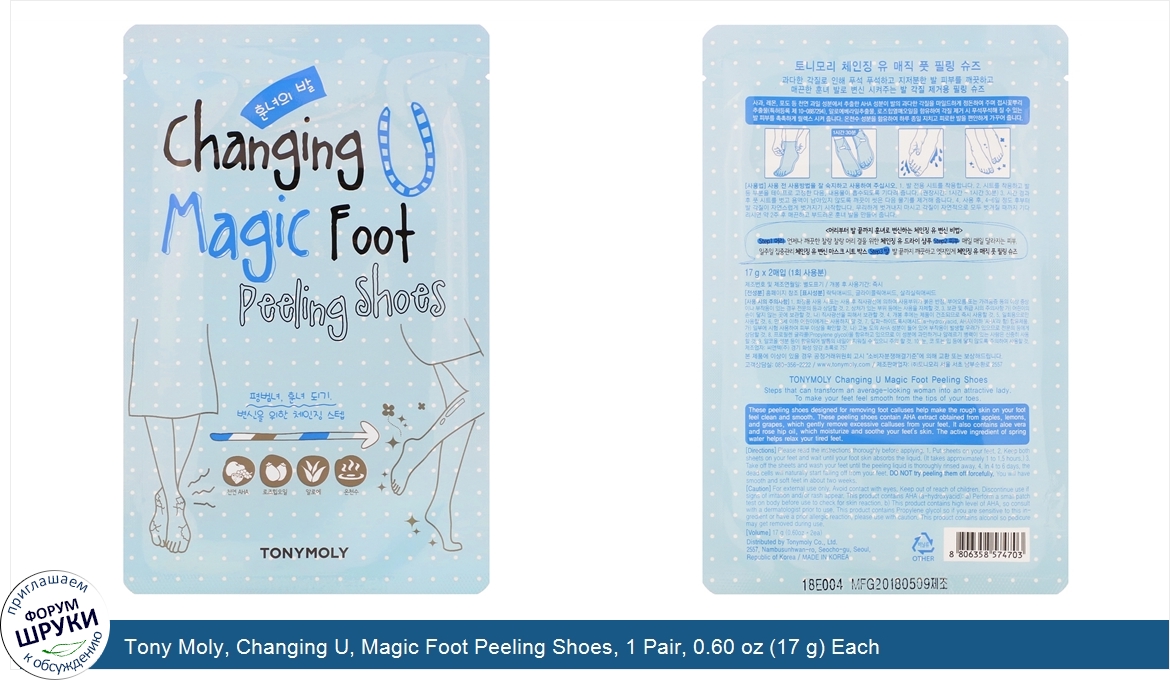Друзья, если у вас есть отзыв/дополнение/комментарий/вопрос относительно Tony Moly, Changing U, Magic Foot Peeling Shoes, 1 Pair, 0.60 oz (17 g) Each - напишите его ответом в эту тему (это будет полезно всему сообществу в целом и вам в отдельности).