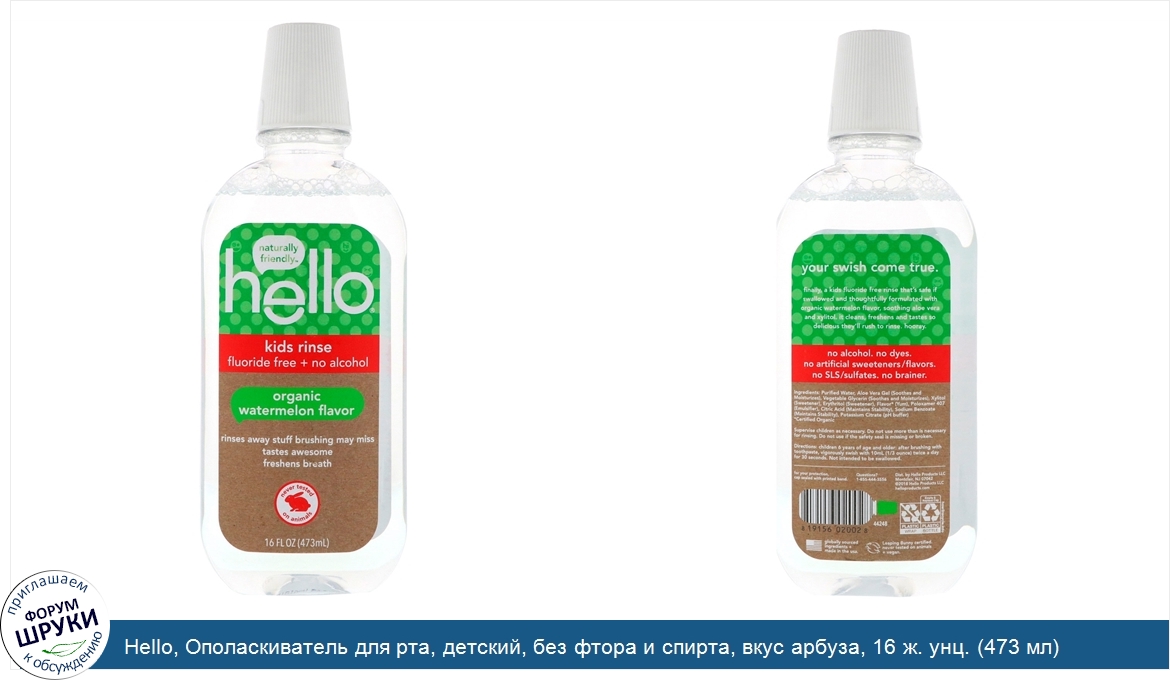Друзья, если у вас есть отзыв/дополнение/комментарий/вопрос относительно Hello, Ополаскиватель для рта, детский, без фтора и спирта, вкус арбуза, 16 ж. унц. (473 мл) - напишите его ответом в эту тему (это будет полезно всему сообществу в целом и вам в отдельности).