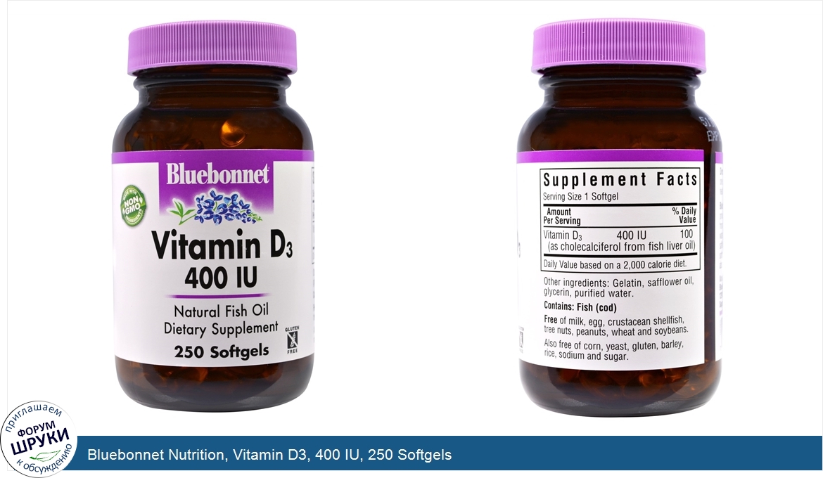Тема 'Bluebonnet Nutrition, Vitamin D3, 400 IU, 250 Softgels'
